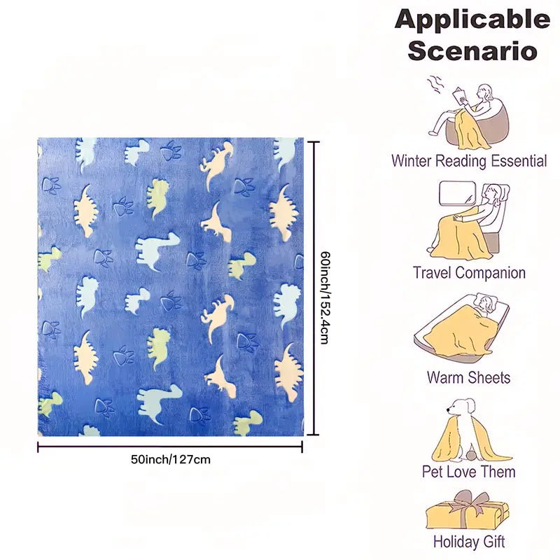 Dinosaur-Patterned Glow-in-the-Dark Throw Blanket